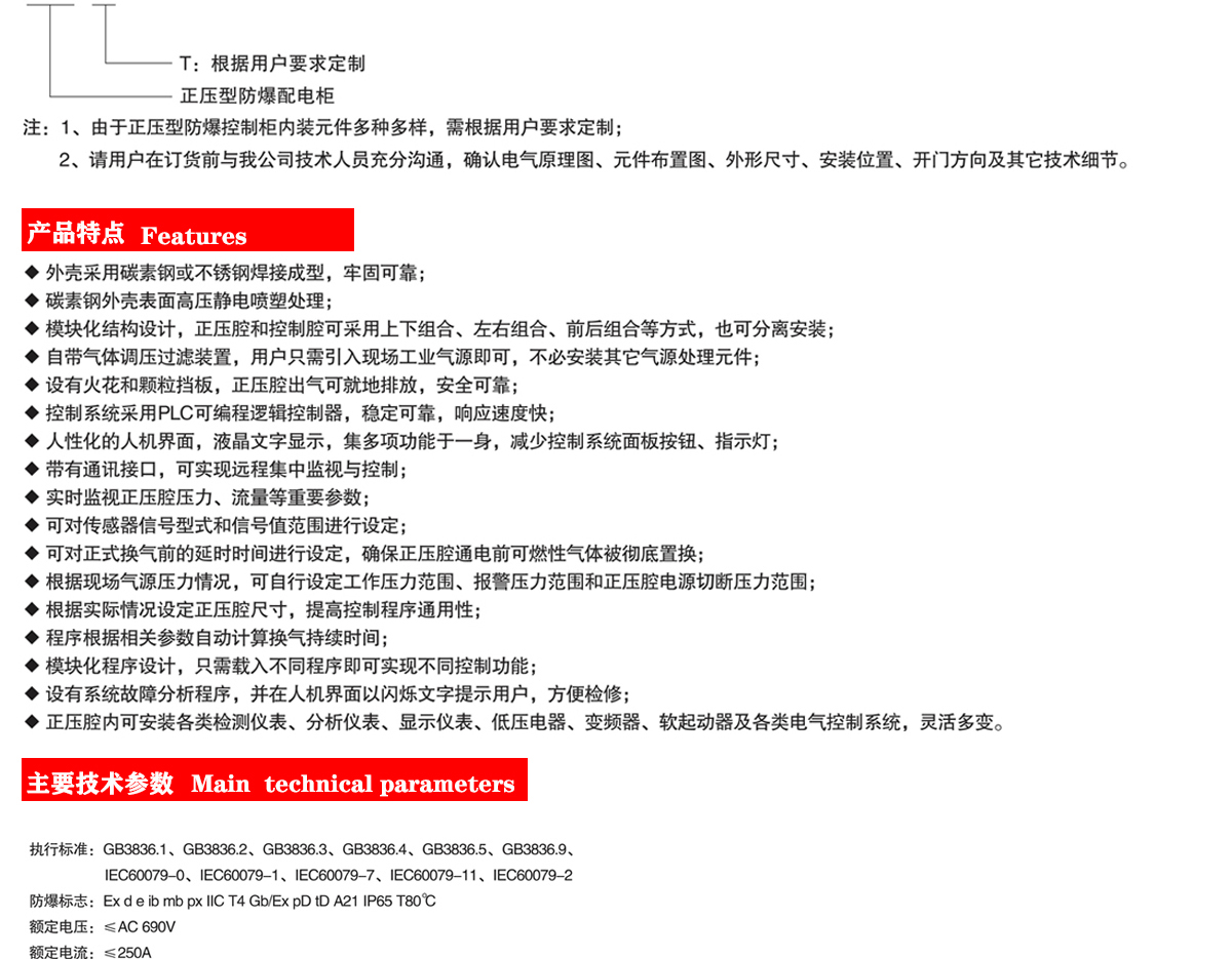 防爆正壓柜的防爆原理主要是采用介質(zhì)隔離點(diǎn)燃源的防爆措施以及形成正壓保護(hù)從而達(dá)到電器防爆的目的;